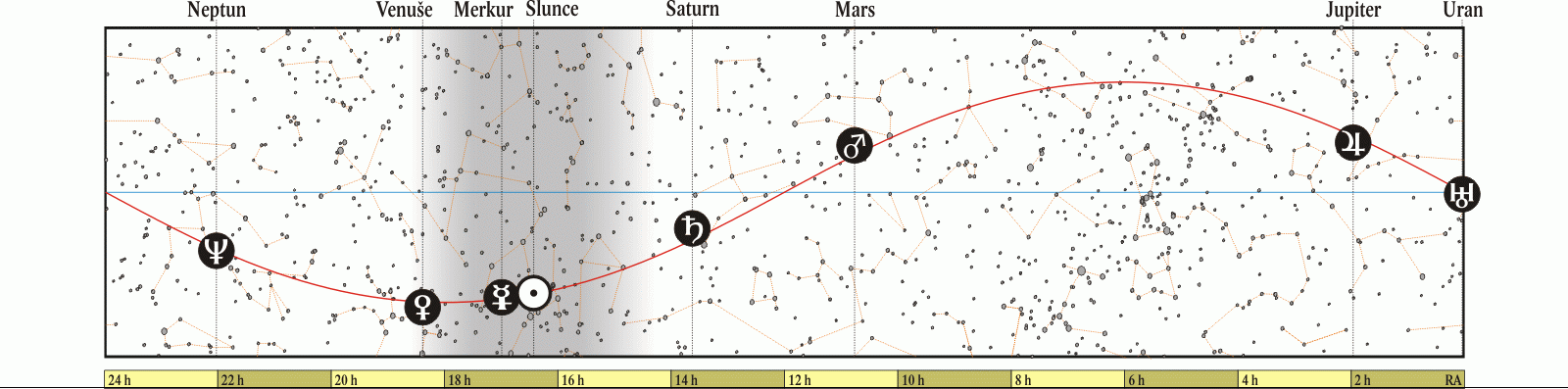 Merkur v dolní konjunkci se Sluncem. |