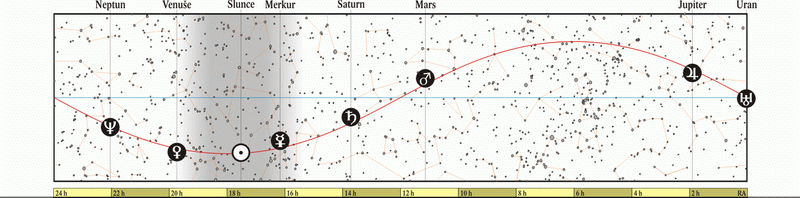 Konjunkce Jupiteru s Měsícem. Měsíc 5° severně. |