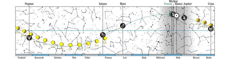 Měsíc v konjunkci s Jupiterem (Měsíc 0,6° severně) |