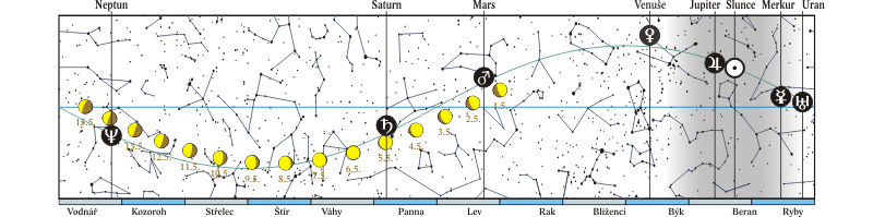 Měsíc v novu; prstencové zatmění Slunce od nás nepozorovatelné |