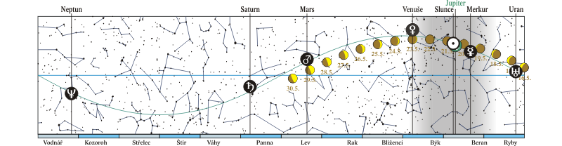 Saturn v konjunkci se Spikou (alfa Vir, Saturn 4,8° severně) |