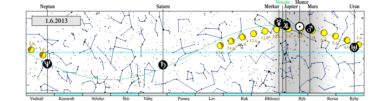Měsíc v konjunkci se Saturnem (Měsíc 4,1° jižně) |
