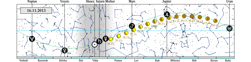 Měsíc v konjunkci s Venuší (Měsíc 7,5° severně; Venuše v blízkosti Měsíce pozorovatelná 6. a 7. 11. večer nad jihozápadním obzorem) |