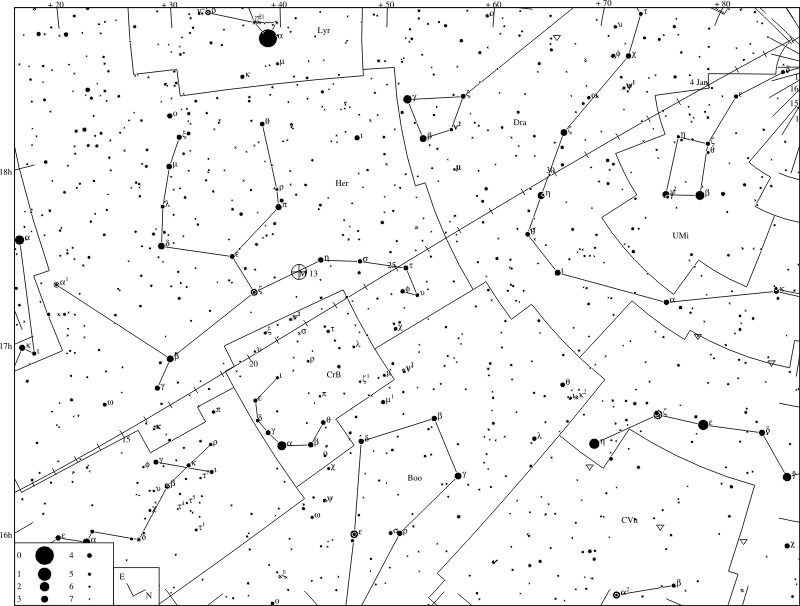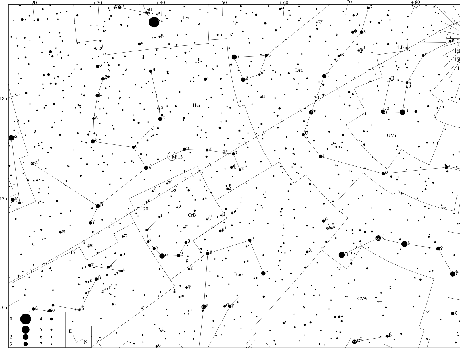 E ~ elongace; m ~ jasnost; A ~ azimut; h ~ výška |