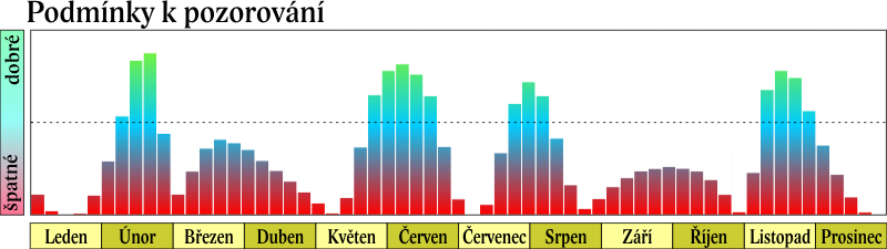 Další období viditelnosti začíná přibližně 20. 5. a Merkur se účastní uskupení trojice planet nízko nad severozápadním obzorem – 25. 5. v 1 h SEČ je v konjunkci s Venuší (Merkur 1,36° severně) a 27. 5. v 9 h SEČ s Jupiterem (Merkur 2,36° severně), ale jasnost rychle klesá a při maximální východní elongaci 12. 6. v 18 h SEČ (24° od Slunce) je pouze +0,5 mag. O několik dní později se planeta ztratí v červáncích. Dne 9. 7. ve 20 h SEČ nastává dolní konjunkce se Sluncem a 30. 7. v 10 h SEČ další maximální západní elongace (20° od Slunce). Na začátku občanského soumraku je 7,5° nad východním obzorem. Období viditelnosti trvá od 25. 7. do poloviny srpna. Merkur postupně zjasňuje z +1,2 mag na -1,3 mag. Současně svítí nad východním obzorem Jupiter a Mars, počátkem srpna se přidá Měsíc.
