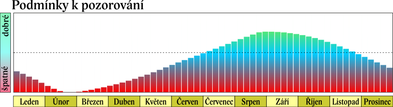 Na podzim se planeta nachází na večerní obloze. Na konci astronomického soumraku je počátkem října 16° nad jihovýchodním obzorem, v listopadu a prosinci se na začátku astronomické noci nachází 27° resp. 28° nad jižním obzorem.