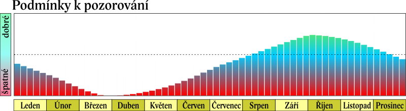 Po opozici je Uran pozorovatelný až do konce roku, v zimě už jen na večerní obloze vysoko nad obzorem. Koncem prosince kulminuje na konci astronomického soumraku nad jihem ve výšce 42°, zapadá krátce po půlnoci.