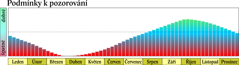 Ve druhé polovině roku jsou nad naším obzorem pozorovatelné tři těsné konjunkce Měsíce s Uranem. První nastává 11. 9. ve 3 h SEČ, druhá (nejtěsnější, Měsíc 0,37° severně od Uranu) 4. 11. v 18 h SEČ a třetí 2. 12. ve 2 h SEČ.