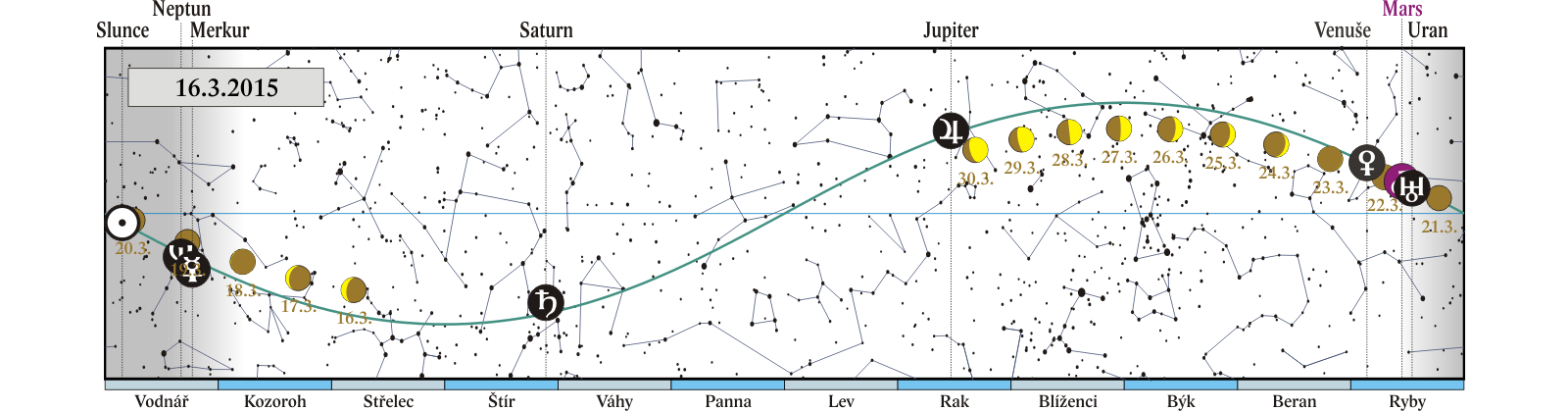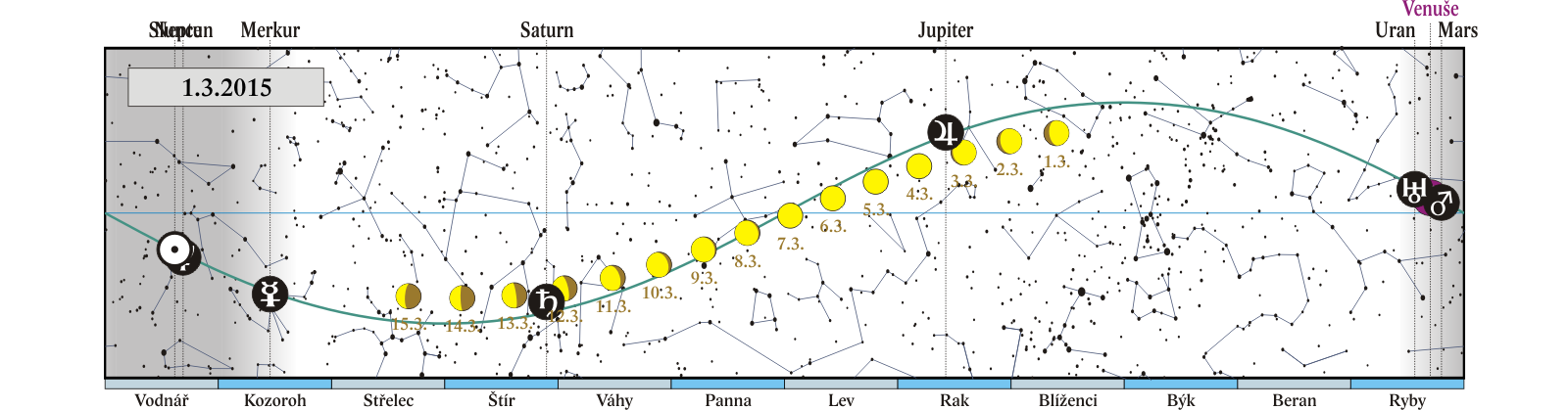 Měsíc v novu (10:36); úplné zatmění Slunce, u nás pozorovatelné jako částečné |