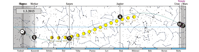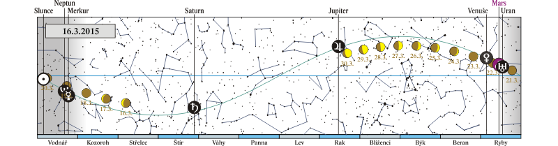 Měsíc v konjunkci s Marsem (Měsíc 1,7° jižně) |
