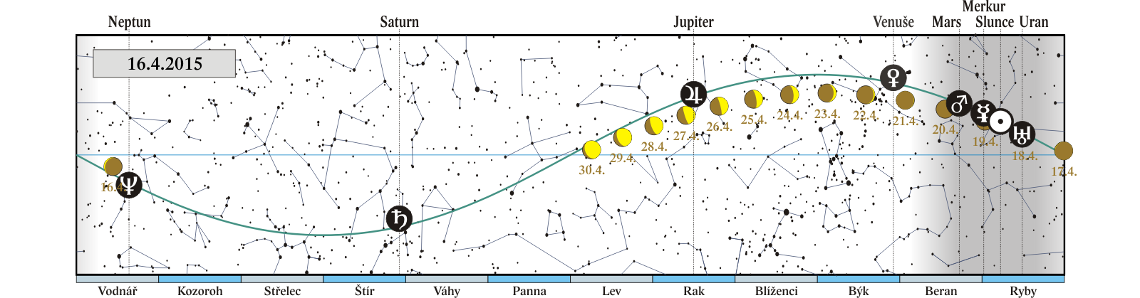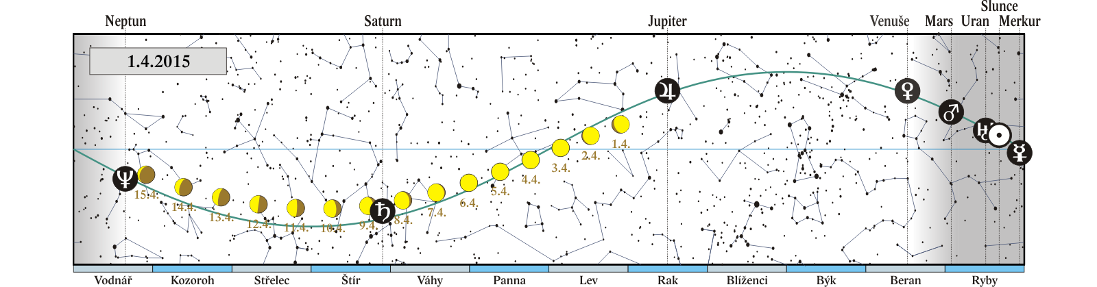 Měsíc v konjunkci se Saturnem (Měsíc 1,6° severně; Měsíc v blízkosti Saturnu pozorovatelný 8. a 9. 4.) |