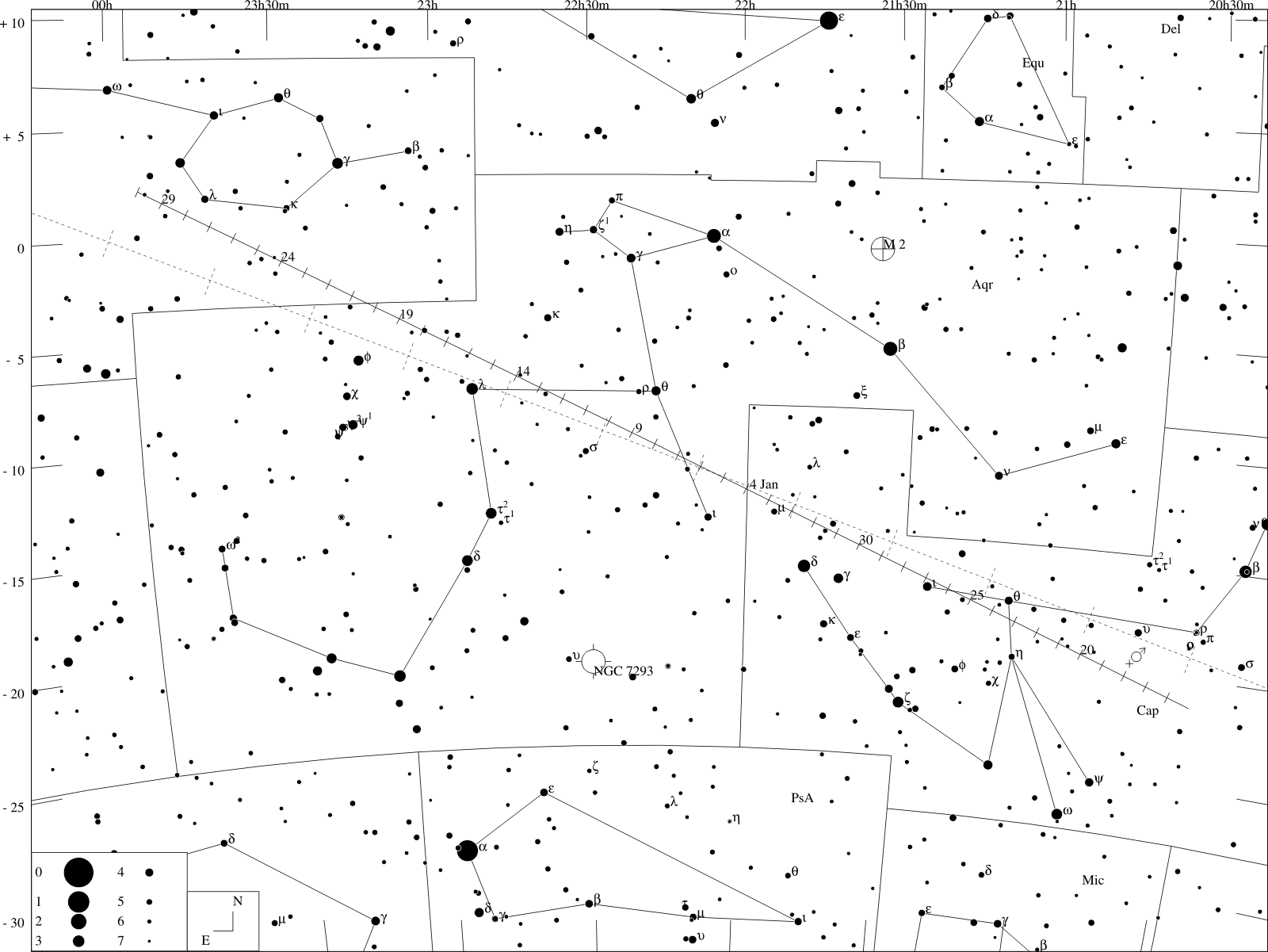 E ~ elongace; m ~ jasnost; A ~ azimut; h ~ výška |