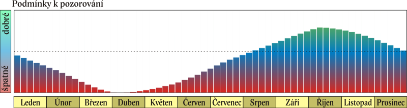 Po opozici je Uran pozorovatelný až do konce roku – v listopadu téměř po celou noc a v prosinci po většinu noci kromě rána. Na konci roku kulminuje na začátku astronomické noci nad jihem ve výšce 45°, zapadá hodinu po půlnoci.