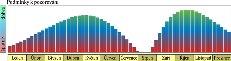 Velmi příznivé podmínky pro pozorování Venuše však zůstanou až do konce roku. Během podzimu pokračuje její pohyb ze Lva do souhvězdí Panny, v prosinci ji už najdeme ve Vahách. Na konci roku uvidíme Venuši počátkem nautického soumraku ve výšce 13° na jihovýchodě, na začátku občanského soumraku svítí v červáncích téměř 17° nad jihojihovýchodním obzorem. Jasnost planety bude stále ještě velká (-4,1 mag). V její blízkosti se tou dobou začne na ranní obloze objevovat Saturn.