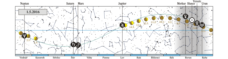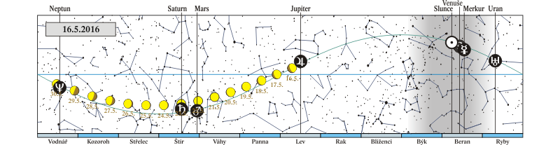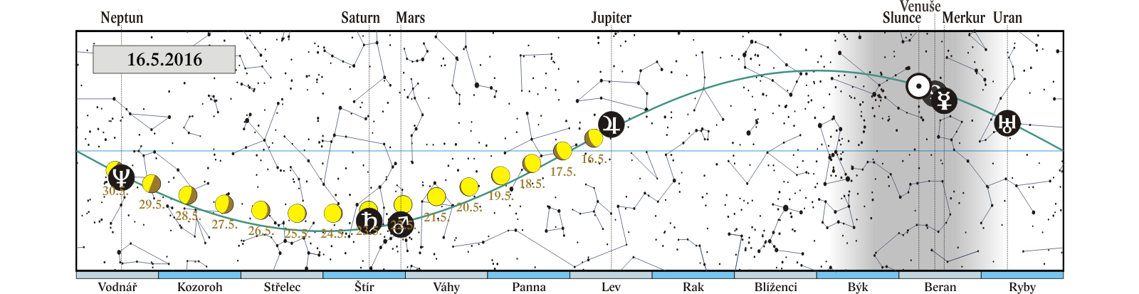 Měsíc v konjunkci s Jupiterem (Měsíc 2,6° jižně) |