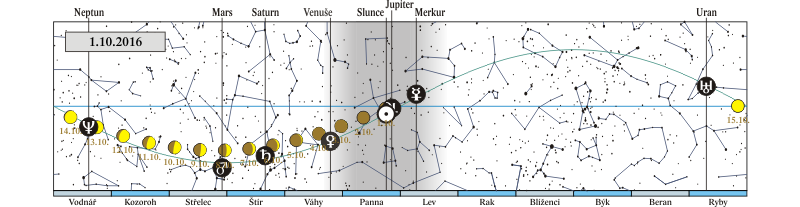 Měsíc v konjunkci s Jupiterem (Měsíc 0,6° severně; přiblížení pozorovatelné ráno) |
