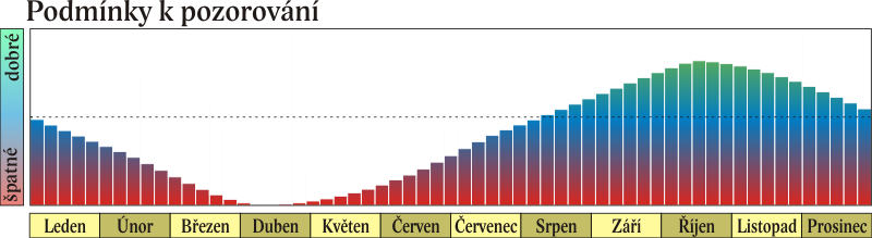 Po opozici je Uran pozorovatelný až do konce roku – v listopadu po většinu noci kromě rána, v prosinci v první polovině noci. Na konci prosince se na počátku astronomické noci nachází nad jihem ve výšce 47°, zapadá více než hodinu po půlnoci. Dne 29. 12. v 17 h SEČ je Uran opět v zastávce a začíná se pohybovat přímo.