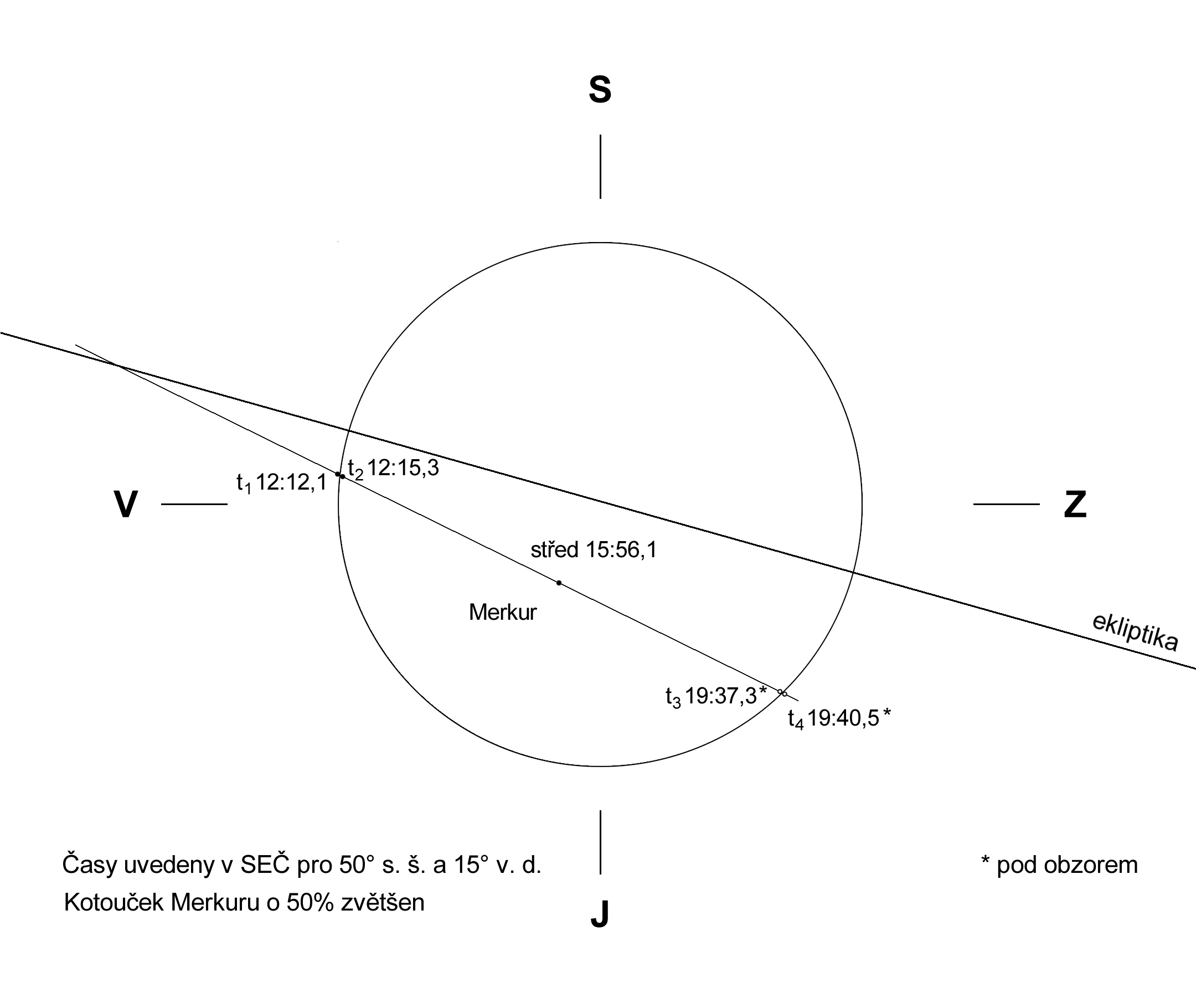 V pondělí 9. května 2016 dochází k přechodu Merkuru přes Slunce. U nás úkaz začíná krátce po pravém poledni vysoko nad jižním obzorem a jeho průběh je pozorovatelný až do západu Slunce. Třetí a čtvrtý kontakt nastává již pod naším obzorem. Přechod Merkuru přes sluneční disk je pozorovatelný pouze dalekohledem vybaveným speciálním filtrem či v projekci. Při přímém pozorování Slunce dalekohledem hrozí trvalá ztráta zraku!