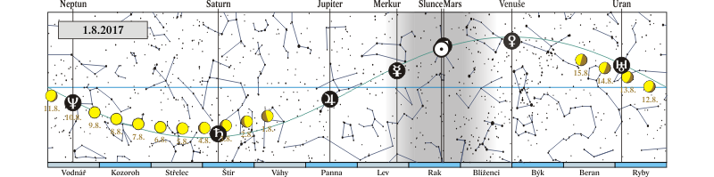 Měsíc v novu (19:29), úplné zatmění Slunce u nás nepozorovatelné |