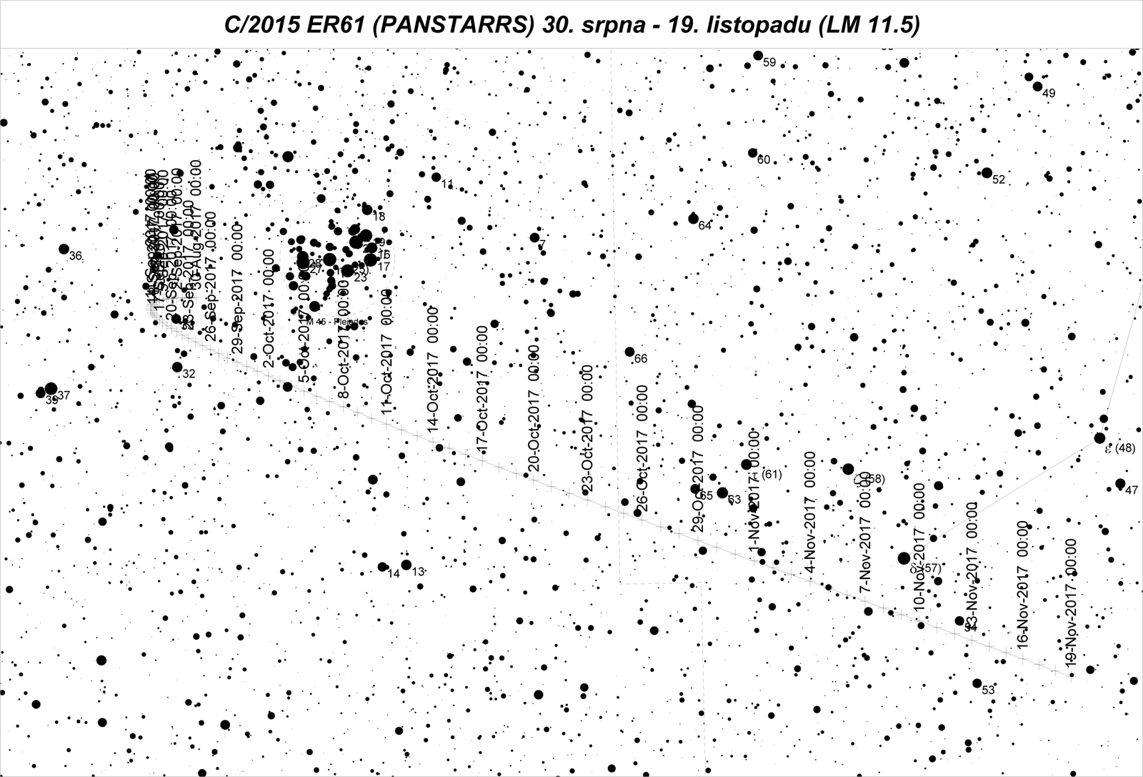 je poměrně jasná dlouhoperiodická kometa, bohužel geometrie průletu není moc příznivá. K Zemi se nepřiblíží víc než 1,18 AU. V celé první polovině roku bude jen velice nízko na ranní obloze, prakticky nepozorovatelná. Začátkem ledna bude mít okolo 13 mag, do poloviny března zjasní na 10 mag a na přelomu dubna a května dosáhne maxima okolo 8,5 mag. Od nás začne být vidět až v druhé polovině června, kdy bude pomalu slábnout k 10 mag. V červenci a první polovině srpna bude jasnější 11 mag a v dobré pozici na ranní obloze. Slábnout bude pomalu a budou se výrazně lepšit podmínky viditelnosti. Koncem srpna bude mít stále 11,5 mag, v září zeslábne k 12 mag a v říjnu k 12,8 mag, celý podzim bude ve výborné pozici vysoko na ranní obloze. Z dosahu větších dalekohledů zmizí začátkem prosince, kdy zeslábne k 14 mag.