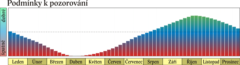 Po opozici je Uran v listopadu pozorovatelný po většinu noci kromě rána, v prosinci v první polovině noci. Na konci prosince se na počátku astronomické noci nachází nad jihem ve výšce 48°, zapadá hodinu a půl po půlnoci.