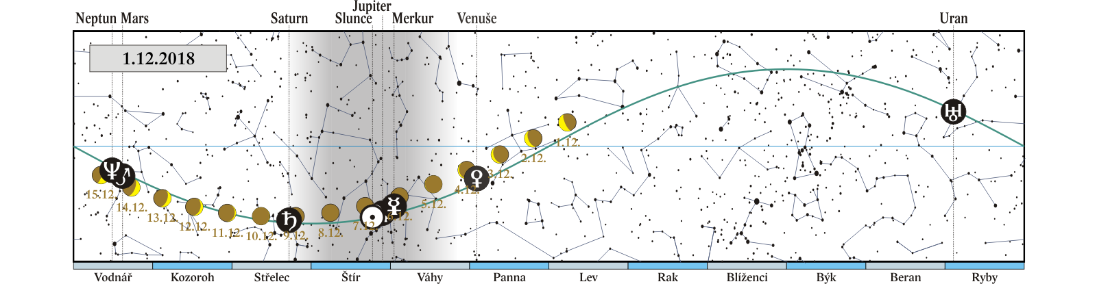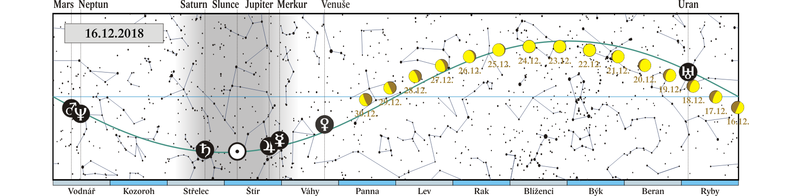 začátek astronomické zimy – zimní slunovrat (23:23), Slunce vstupuje do znamení Kozoroha |