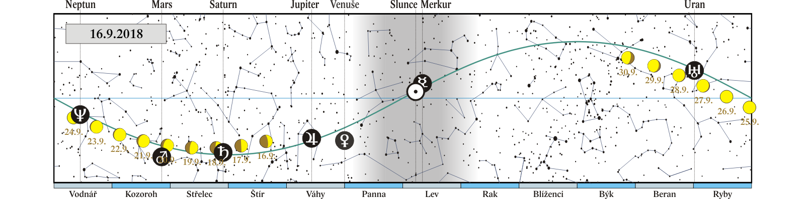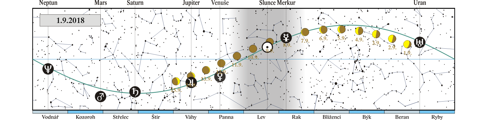 začátek astronomického podzimu – podzimní rovnodennost (2:54), Slunce vstupuje do znamení Vah |