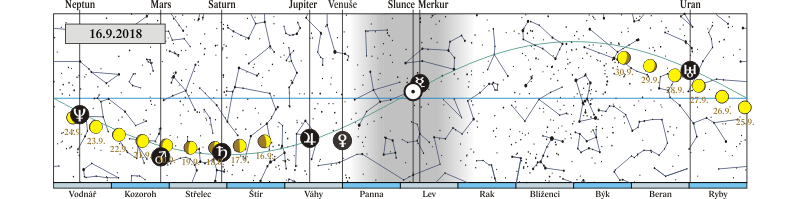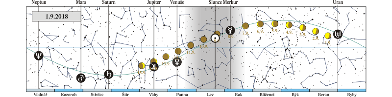 Merkur v konjunkci s α Leo (Regulus 1,0° jižně; planeta pozorovatelná ráno) |