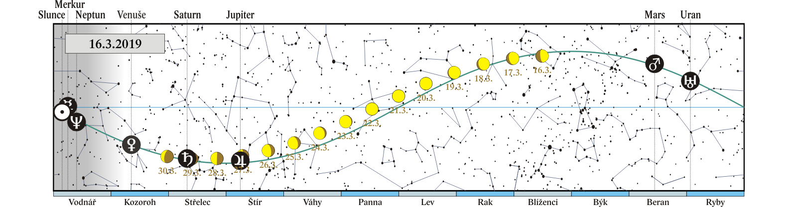 jarní rovnodennost (22:58), začátek astronomického jara, Slunce vstupuje do znamení Berana |