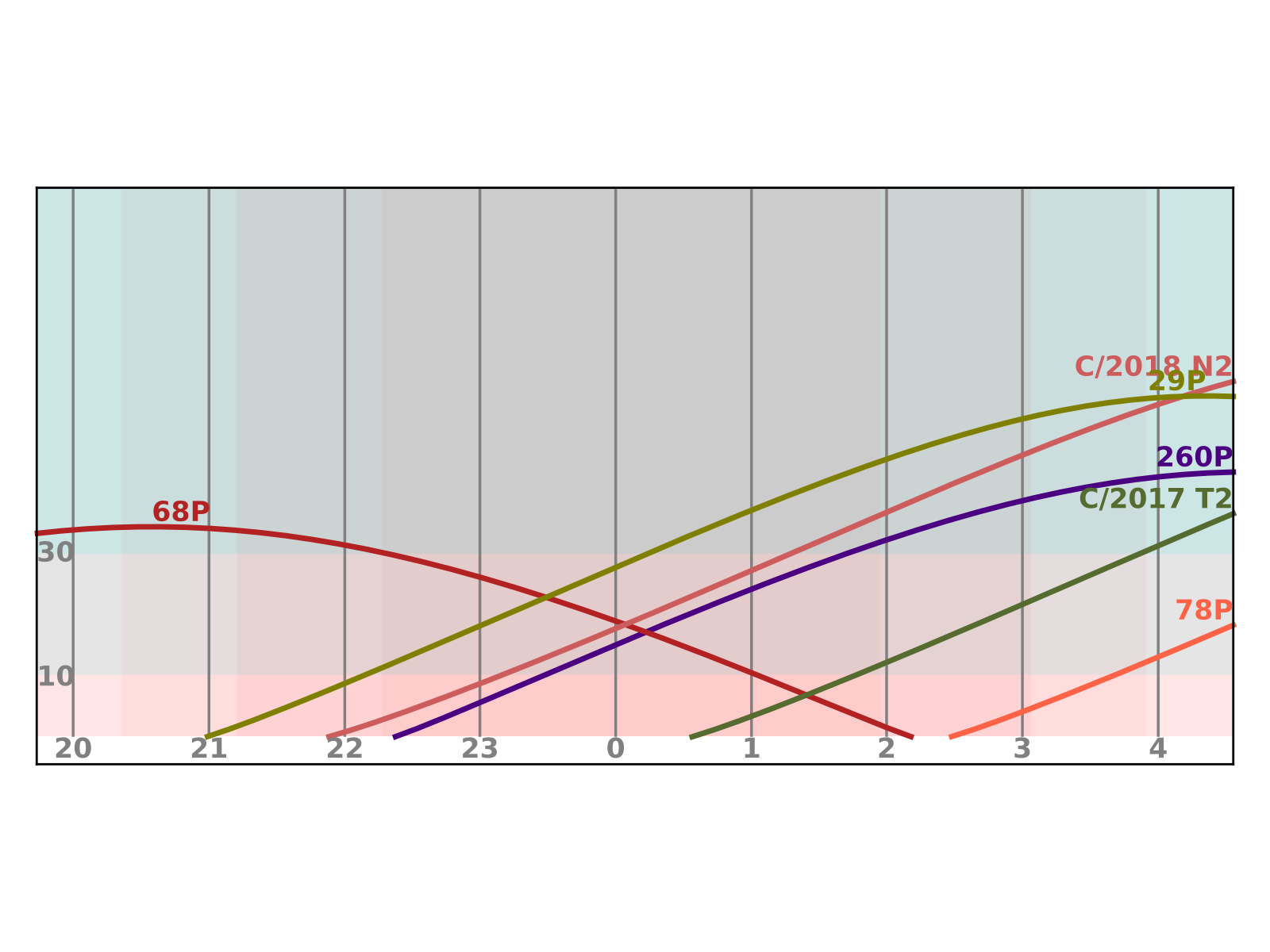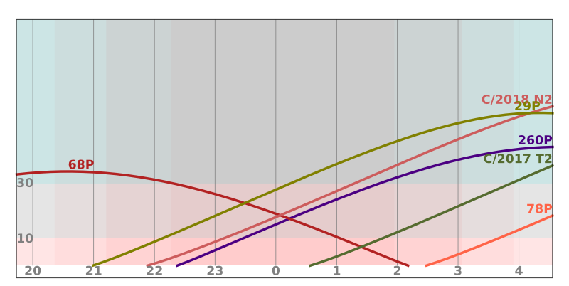 V tomto období nejsou očekávané žádné komety jasnější 12,5 mag.