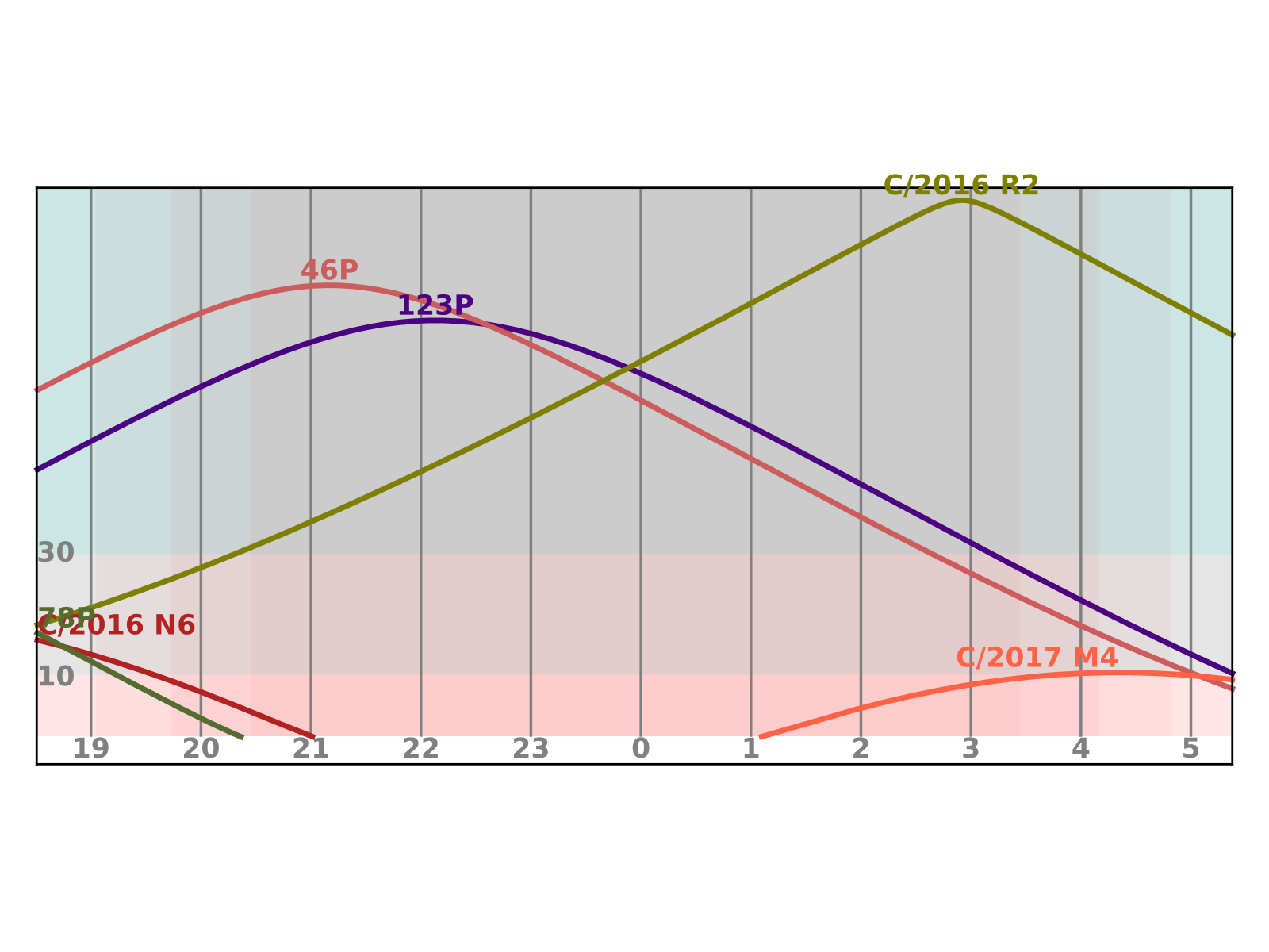 V tomto období nejsou očekávané žádné komety jasnější 12,5 mag.