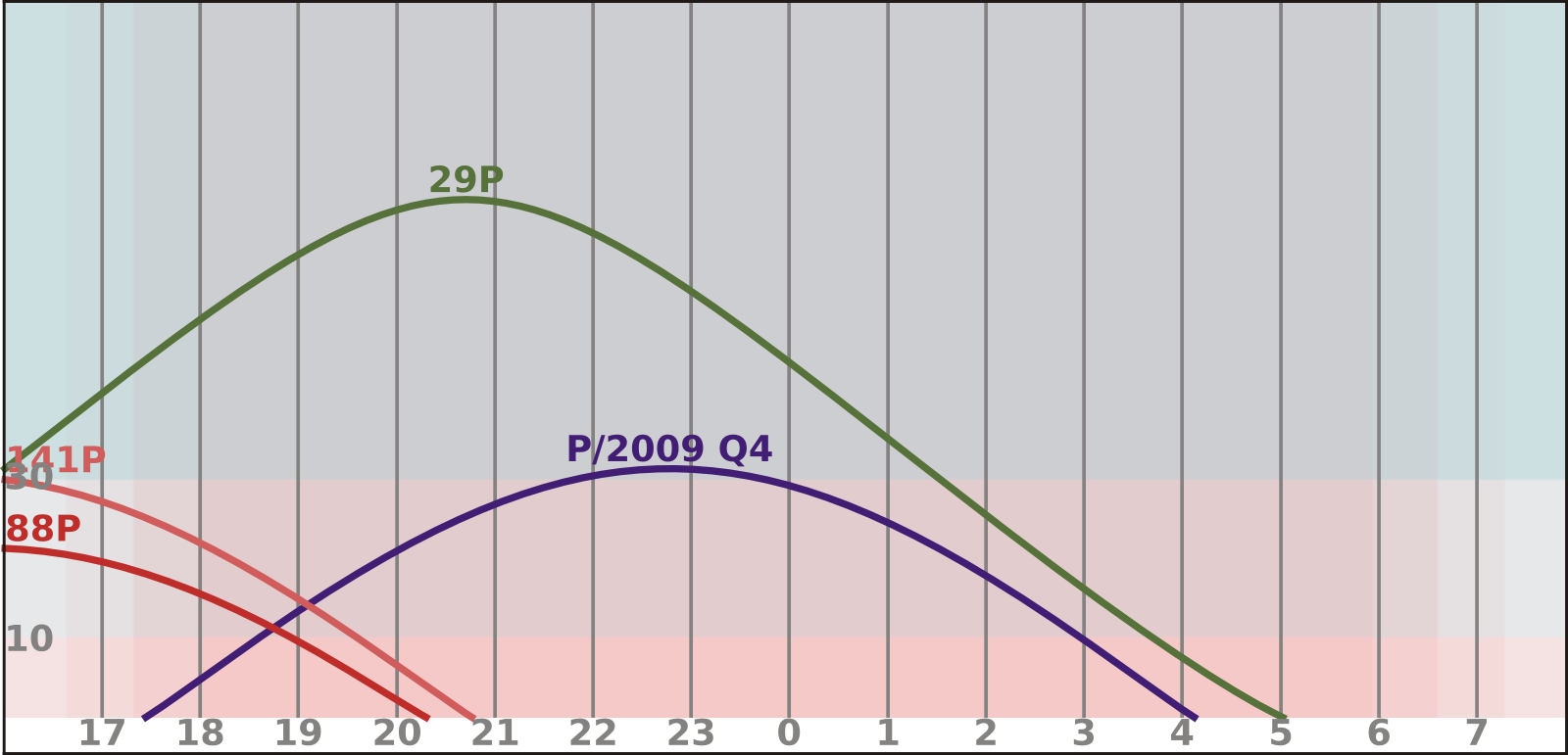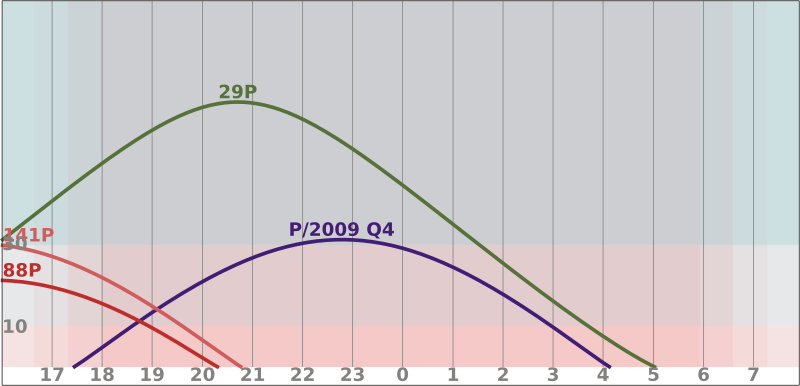Pozorovací podmínky komety 88P/Howell se budou pomalu lepšit, s jasností okolo 11 mag ji nalezneme v Kozorohovi, ze kterého pomalu poletí do Vodnáře. Na obloze se objeví kometa 141P/Machholz. Ta bude zjasňovat z 12 na 11,5 mag a bude se velmi rychle pohybovat souhvězdím Vodnáře na pomezí s Kozorohem. Zajímavou kometou na prosincové obloze by mohla být P/2009 Q4 (Boattini), jejíž návrat je v tomto století nejpříznivější. Nalezneme ji v souhvězdí Eridanus.