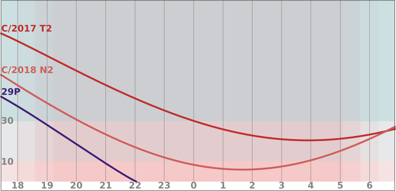 V únoru budeme moci pozorovat opět jasnou “trvalku” (jasnost kolem 9,5 mag) C/2017 T2 (PANSTARRS), která se přesune do souhvězdí Kasiopeji. Kometa C/2018 N2 (ASASSN) zeslábne k 13 mag a pozorovací podmínky se budou zhoršovat. Nalezneme ji stále v Andromedě, kde se bude pohybovat směrem ke Kasiopeji. Stejně tak29P/Schwassmann-Wachmann bude klesat níže k obzoru. Kometa 155P/Shoemaker již zeslábne pod 14 mag.