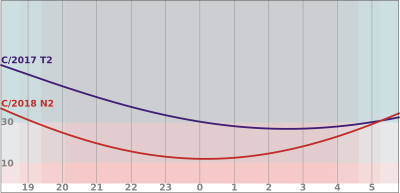 V březnu bude dále zjasňovat kometa C/2017 T2 (PANSTARRS), dosáhne jasnosti okolo 9 mag a pozorovat ji budeme moci celou noc v souhvězdí Kasiopeji. Kometa C/2018 N2 (ASASSN) bude dál mírně slábnout a klesat k obzoru, z Andromedy se přesune do Kasiopeji.