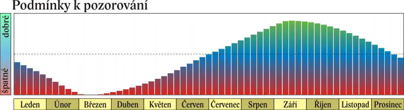 K vyhledání planety je třeba alespoň triedr či malý astronomický dalekohled, kotouček lze spolehlivě rozlišit až při zvětšení 200x či 300x. Po celý rok 2020 se nachází v souhvězdí Vodnáře, v blízkosti hvězd φ Aqr a 96 Aqr.