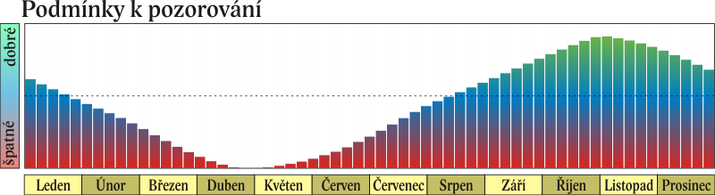 Od začátku dubna je Uran nepozorovatelný. Konjunkce se Sluncem nastává 26. 4. v 10 h a ve 22 h téhož dne dělí Uran od Země největší vzdálenost (20,811 au).
