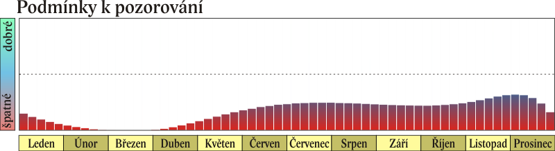 V říjnu a listopadu je Venuše jasnou Večernicí ve společnosti Jupiteru a Saturnu. Dne 29. 10. ve 22 h SEČ dosahuje největší východní elongace (47°), 4. 12. v 15 h SEČ pak maximální jasnosti (-4,7 mag). Tehdy najdeme Venuši na konci občanského soumraku ve výšce 11° nad jihozápadním obzorem. Dne 11. 12. v 18 h SEČ se Venuše ocitá v těsné konjunkci (0,07°) s trpasličí planetou Pluto. Úkaz ale nastává velmi nízko nad jihozápadním obzorem a trpasličí planeta je prakticky nepozorovatelná.