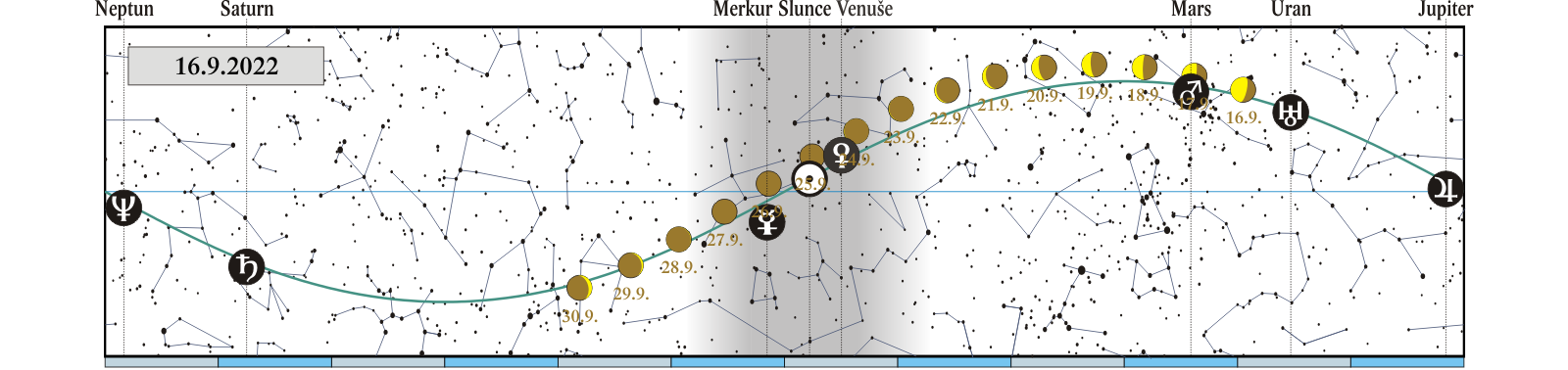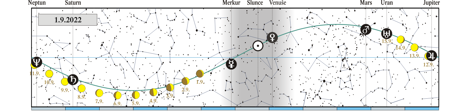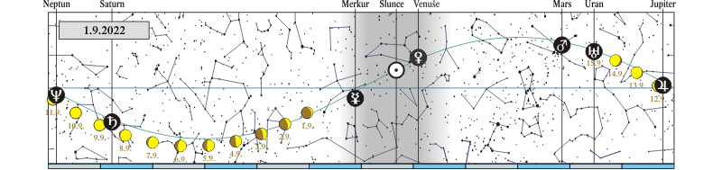 Jupiter v opozici se Sluncem (-2,9 mag) |