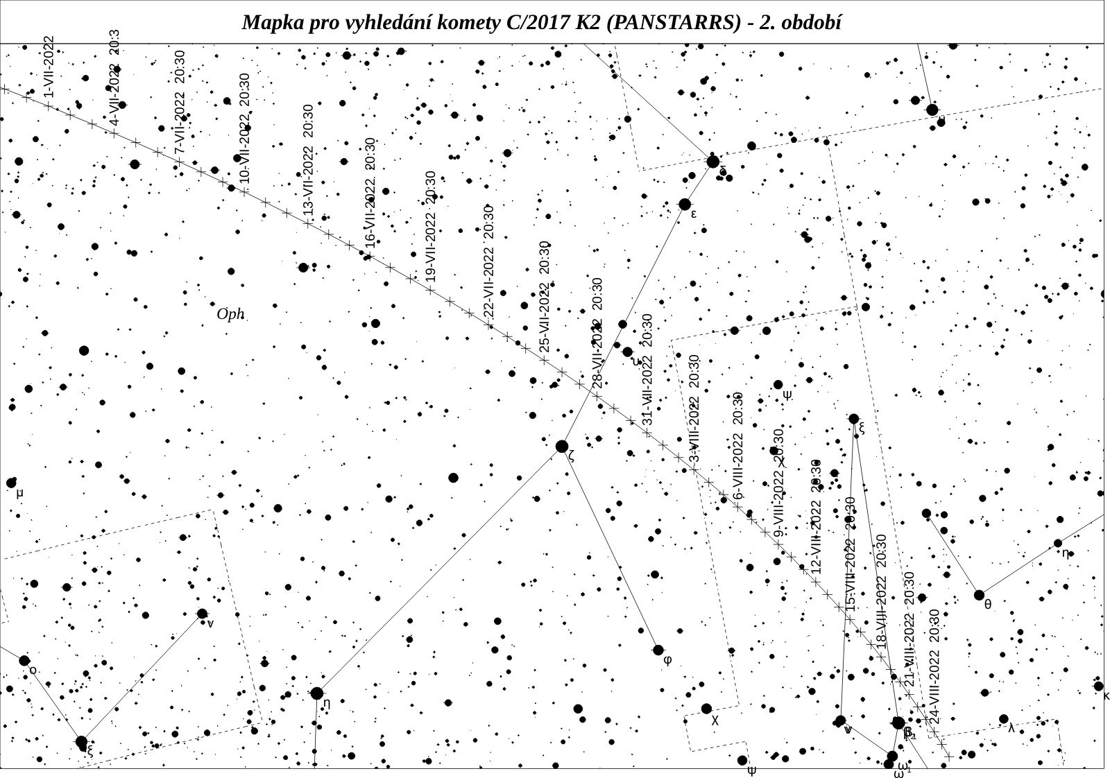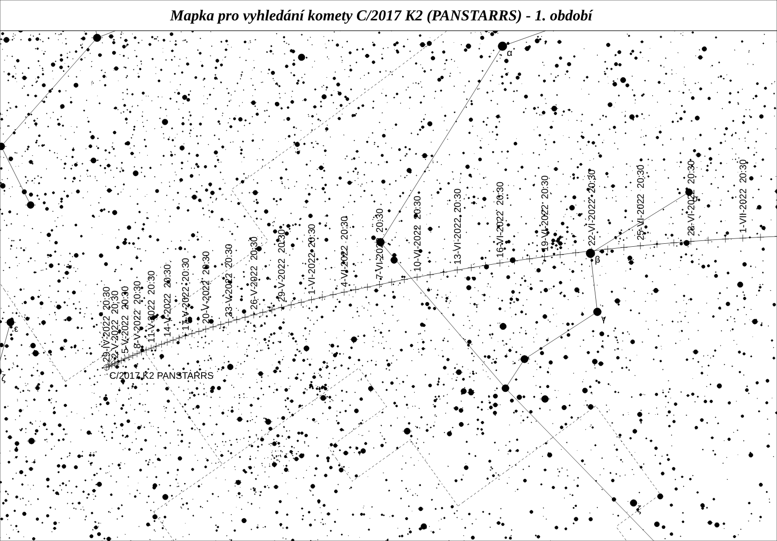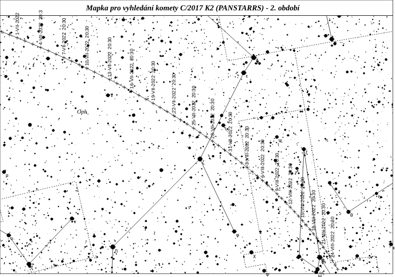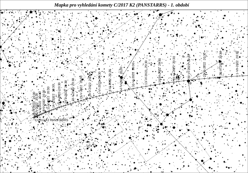 C/2017 K2 (PANSTARRS) je velice aktivní kometa přicházející k nám poprvé z Oortova oblaku. Byla objevena jako objekt 20,8 mag více než 5 let před letošním průchodem perihelem. Měla by to být nejjasnější kometa letošního roku s maximem jasnosti kolem 8 mag, kterého dosáhne v průběhu letních prázdnin.