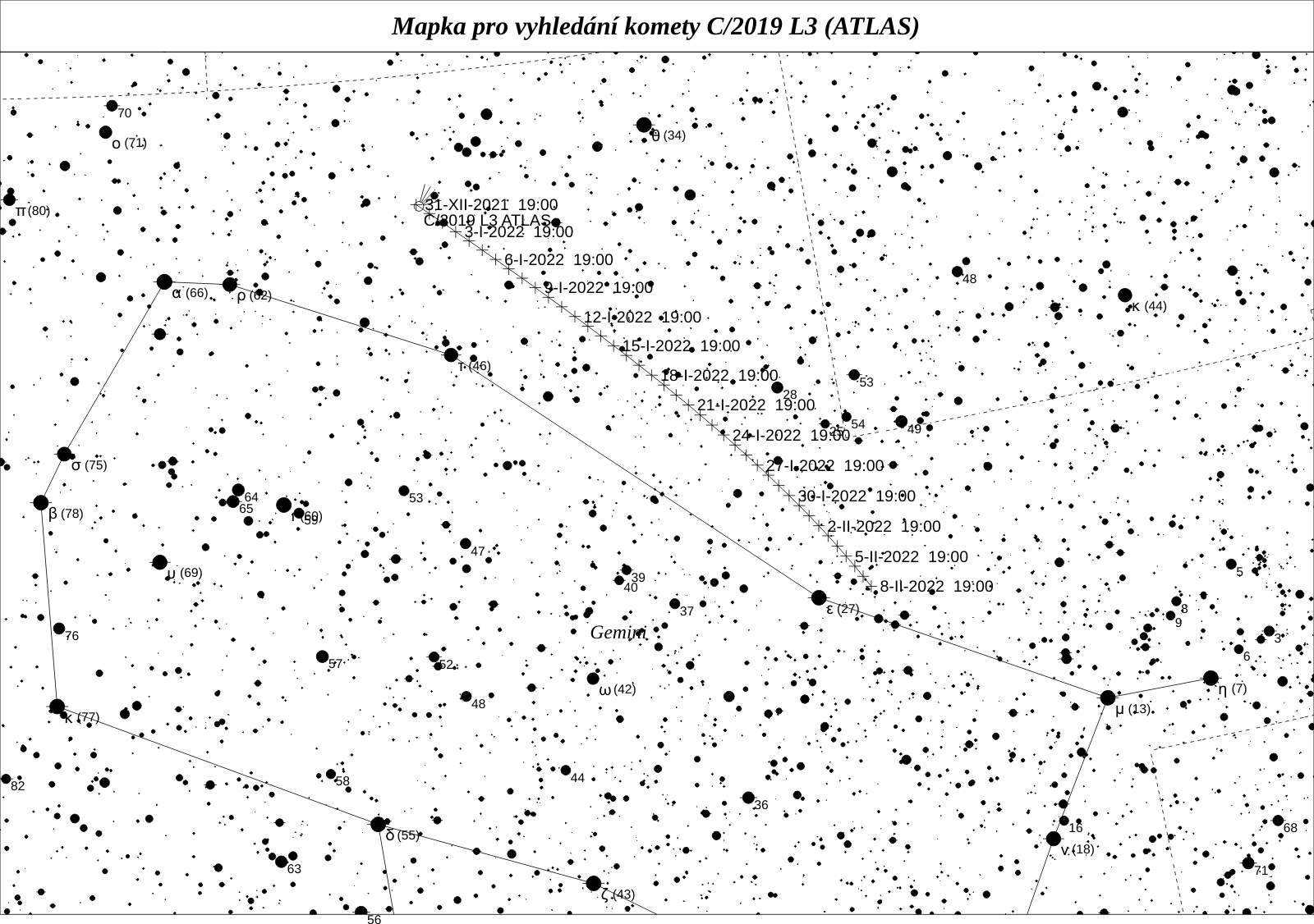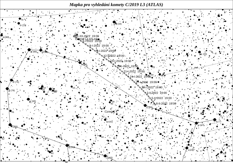 Taktéž C/2019 L3 (ATLAS) k nám přilétá poprvé z Oortova oblaku, po průletu vnitřní částí Sluneční soustavy se její dráha změní na hyperbolickou a Sluneční soustavu definitivně opustí. Letos jí budeme moci pozorovat řadu měsíců, hned v lednu bude mít maximum jasnosti okolo 10 mag při excelentní výšce nad obzorem.