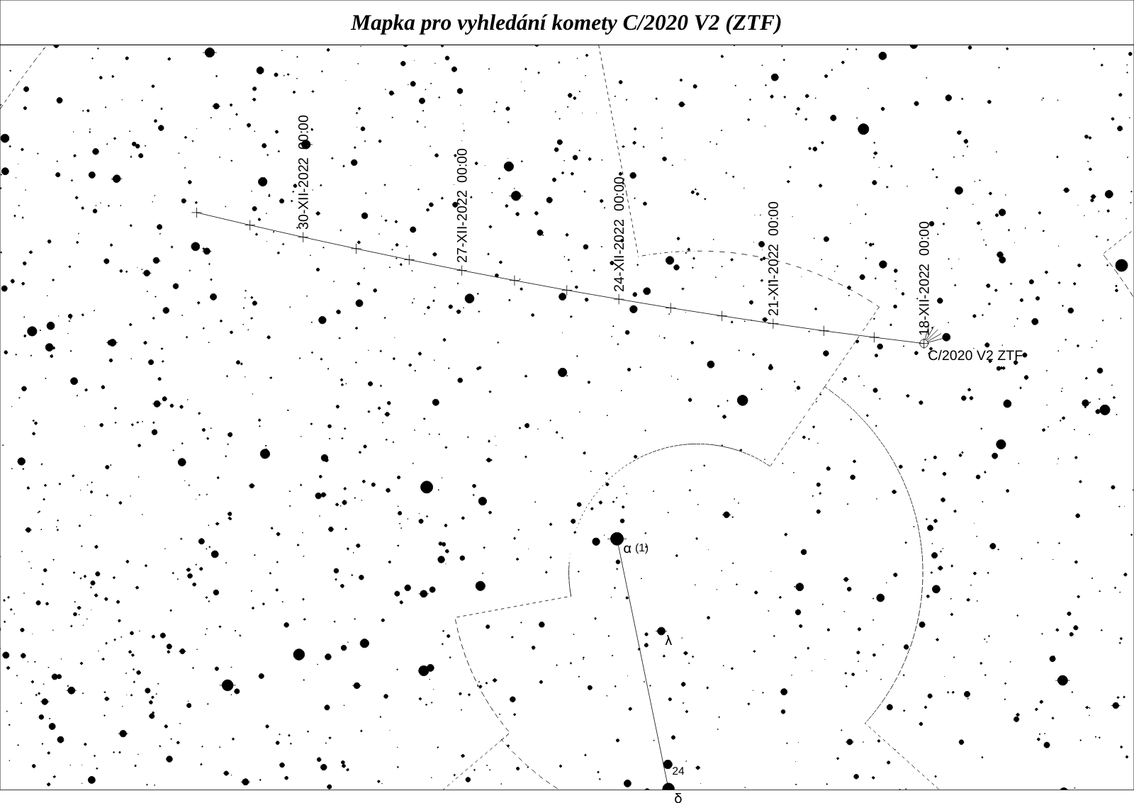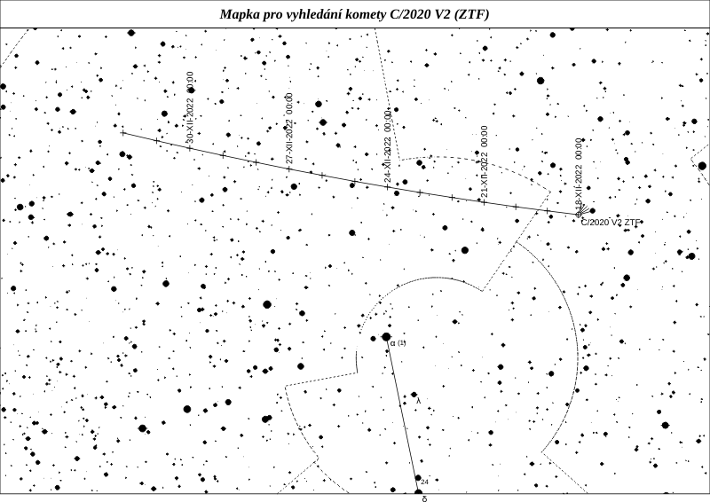 V následujícím roce projde přísluním i C/2020 V2 (ZTF), dynamicky nová kometa z Oortova oblaku, jejíž dráha se průletem změní na hyperbolickou a opustí naši Sluneční soustavu. Jedná se o poměrně velkou a aktivní kometu, a tak i když se Zemi ani Slunci moc nepřiblíží, bude poměrně jasná. Koncem roku ji zastihneme vysoko na obloze s jasností okolo 10 mag.