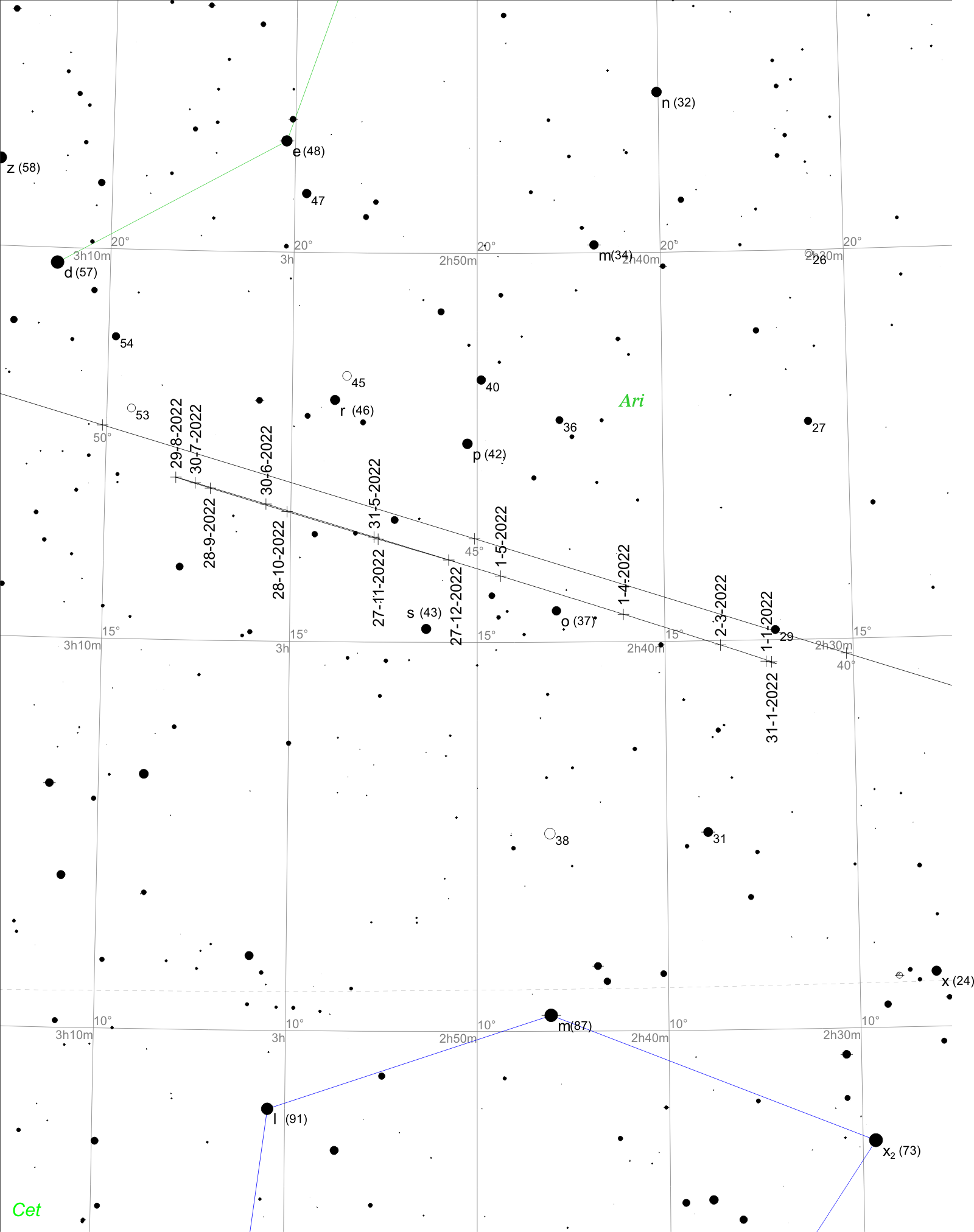Hledací mapka pro planetu Uran.