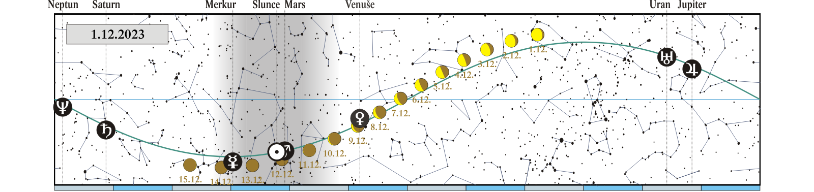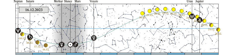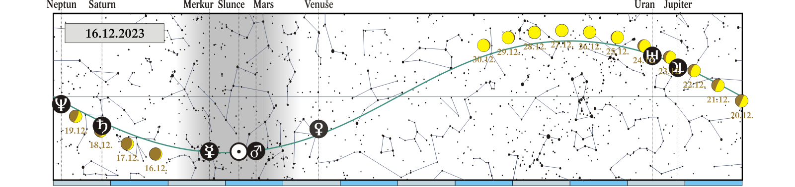 Měsíc v konjunkci se Saturnem (Saturn 2,64° severně; Měsíc u Saturnu na večerní obloze 17. 12.) |