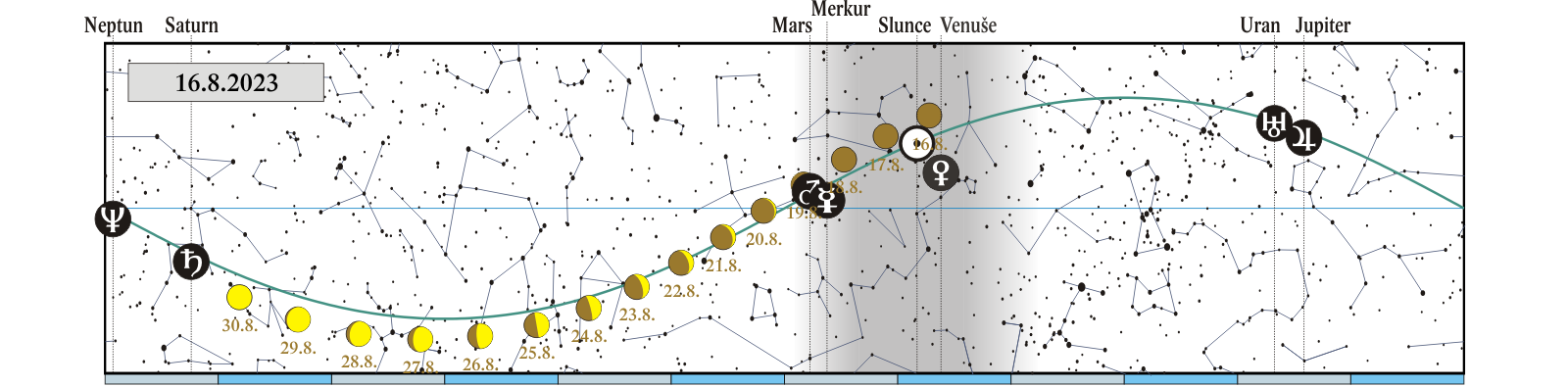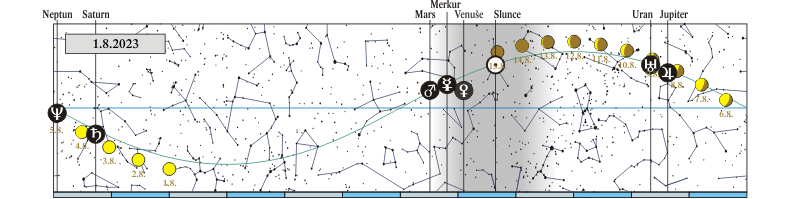 Měsíc v konjunkci se Saturnem (Saturn 2,77° severně; Měsíc u Saturnu 3. a 4. 8.) |