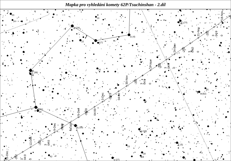 Na rozdíl od výše zmíněných komet není 62P/Tsuchinshan moc známá, což se ale může v tomto století změnit. Objev komety totiž umožnilo přiblížení k Jupiteru na 0,14 au v roce 1960. To radikálně změnilo dráhu komety a přiblížilo perihel ke Slunci z 2,06 na 1,49 au. Díky tomu mohla být v lednu 1965 objevena astronomy z Čínské observatoře na Purpurové hoře. Jupiter dále perihel přibližuje ke Slunci a v současné době se nachází poblíž 1,26 au. Zvýšený příděl slunečního záření způsobuje zvýšenou aktivitu jádra oproti předešlým návratům. K tomu přičtěme velmi příznivý návrat, při kterém se přiblíží k Zemi na 0,52 au a výsledkem je jasná „vánoční kometa“, která by právě v období Vánoc mohla dosáhnout jasnosti okolo 6 mag.