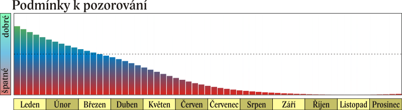 V červenci pro letošní rok období viditelnosti Marsu na naší obloze definitivně končí. Dne 18. 10. v 11 h se Mars ocitne v největší vzdálenosti od Země (2,550 au), konjunkce se Sluncem nastává 18. 11. v 7 h. Mars bude v té době v souhvězdí Vah, kam se koncem října přesune z Panny. Do konce roku 2023 pak stihne ještě projít přes Štíra a Hadonoše do souhvězdí Střelce.