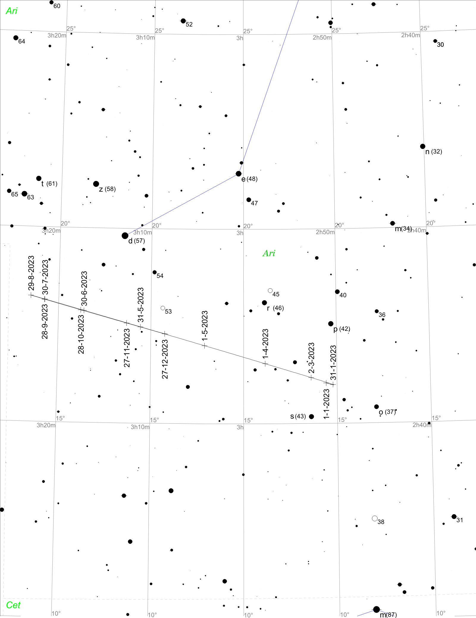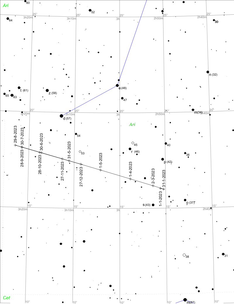 Hledací mapka pro planetu Uran.