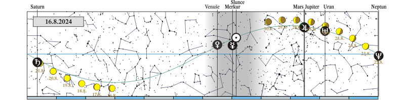 Mars v konjunkci s Jupiterem (Mars 0,31° severně; 14. a 15. 8. ve druhé polovině noci na východě) |