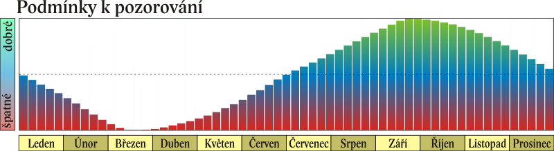 Dobře pozorovatelný je Neptun také v listopadu a prosinci, a to v první polovině noci. Závěrem roku se na konci astronomického soumraku nachází ve výšce 38° nad jižním obzorem a zapadá ve 23 h.