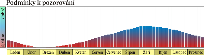 Dobře pozorovatelný zůstává Saturn i v listopadu a prosinci. Koncem roku je na konci občanského soumraku 32° nad jižním obzorem, zapadá před 22. hodinou.
